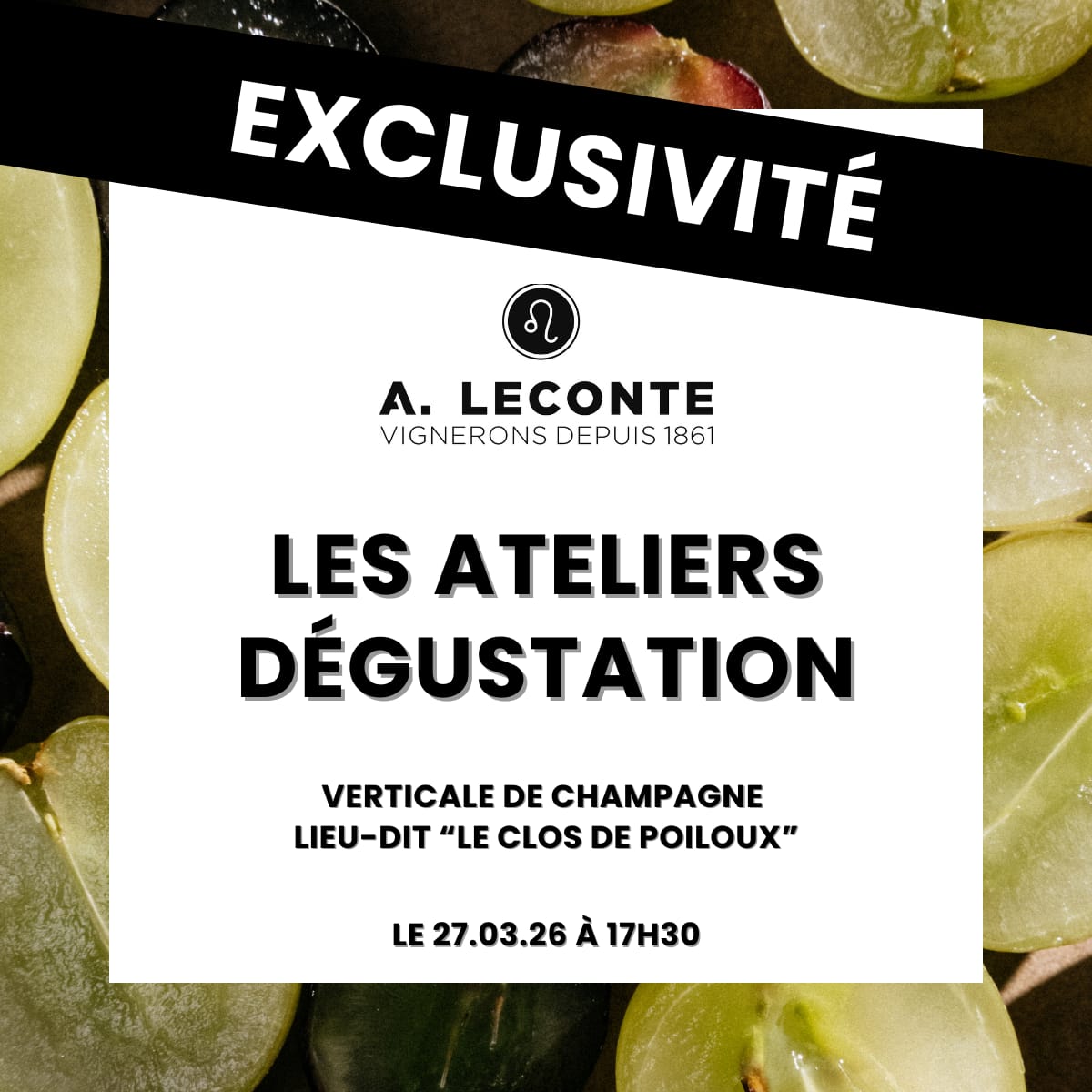 Découvrez une verticale exclusive de 5 cuvées millésimées du lieu-dit « Le Clos de Poiloux ». Chaque champagne sera accompagné d’un accord fromager spécialement pensé afin de révéler la complexité, l’équilibre et la singularité de chaque millésime.